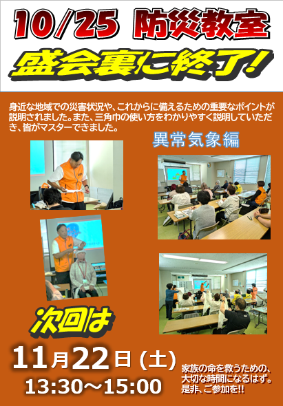 10月25日防災教室(異常気象編)は、盛会裏のうちに終了!!